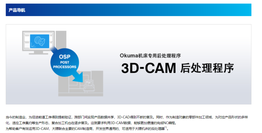 与主要CAM制造商共同研发的OKUMA机床用后处理程序